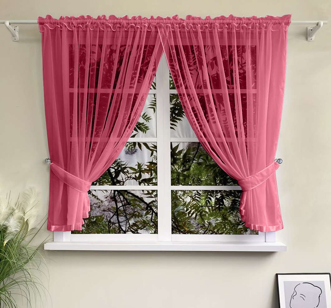 - Универсальность и практичность: Тюль вуаль легко стирается, быстро сохнет и практически не мнется, что делает его очень практичным выбором для кухни. Он не требует сложного ухода и сохраняет свой первоначальный вид надолго.